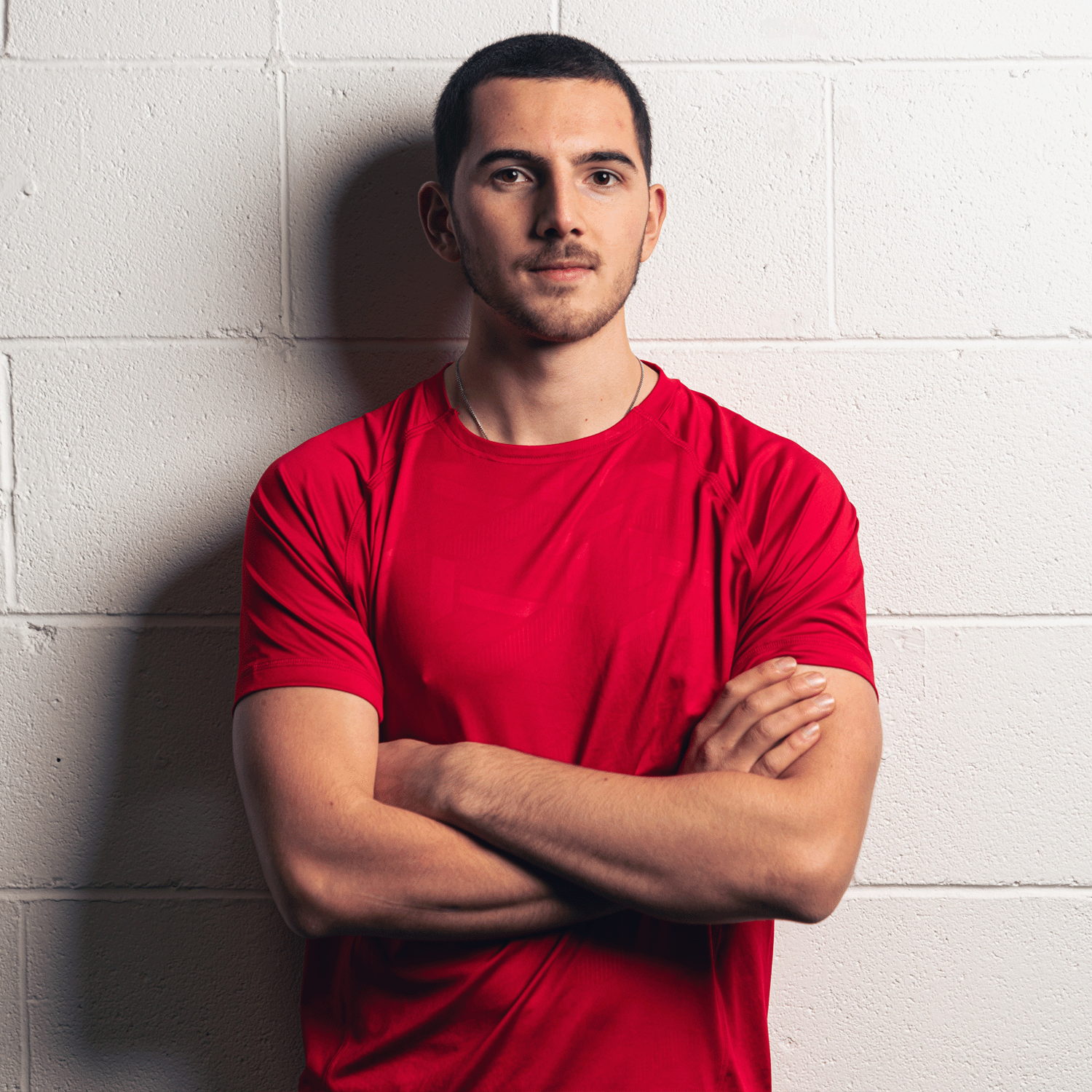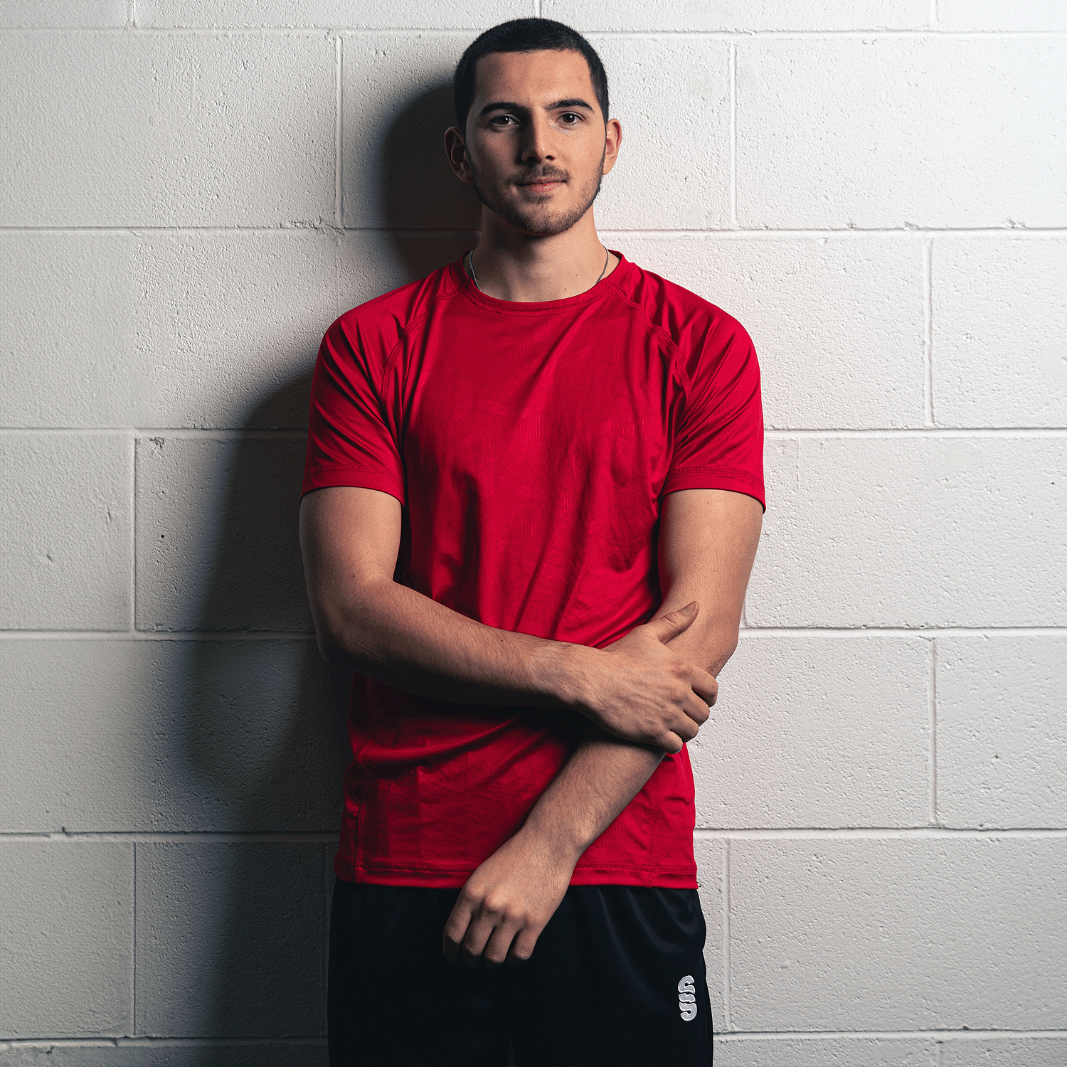 Crew neck fitted polyester interlock material with highly modern print to the from panel